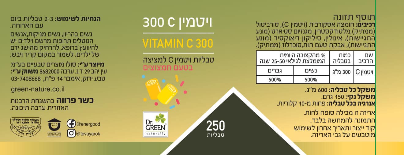 ויטמין C 300 – בטעם חמצוצים 100 טבליות| VITAMIN C