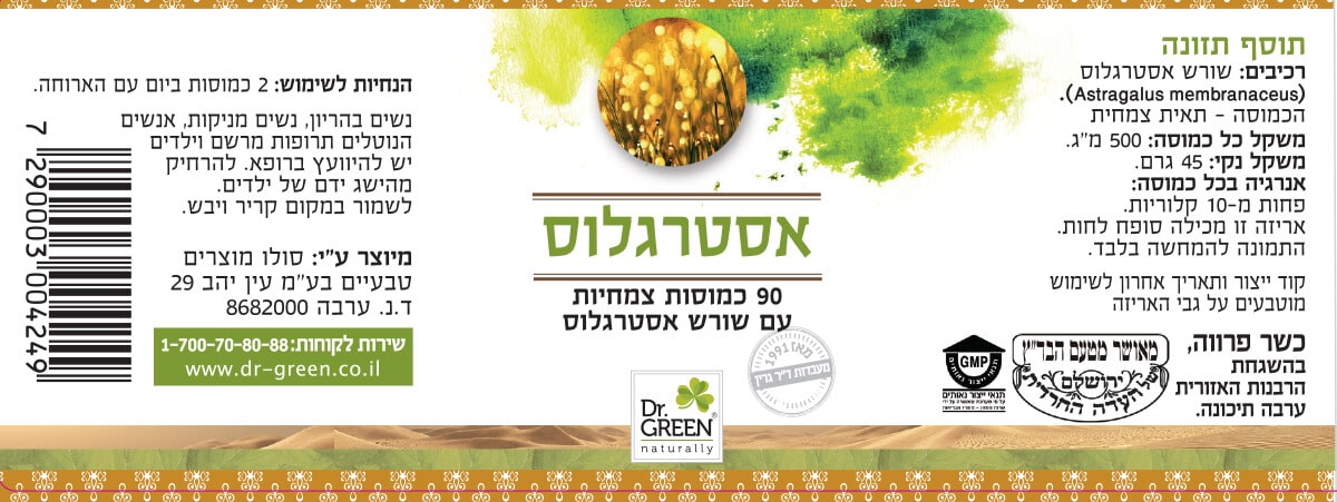 אסטרגלוס – 90 כמוסות צמחיות עם שורש אסטרגלוס 500 מ”ג