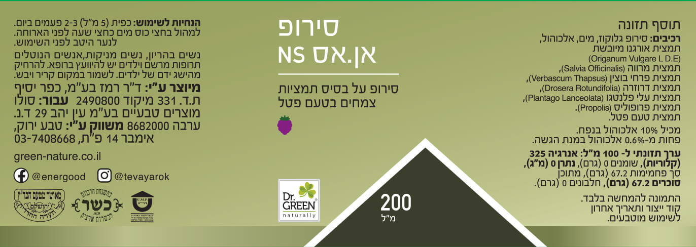 סירופ אן. אס על בסיס תמציות צמחים בטעם פטל
